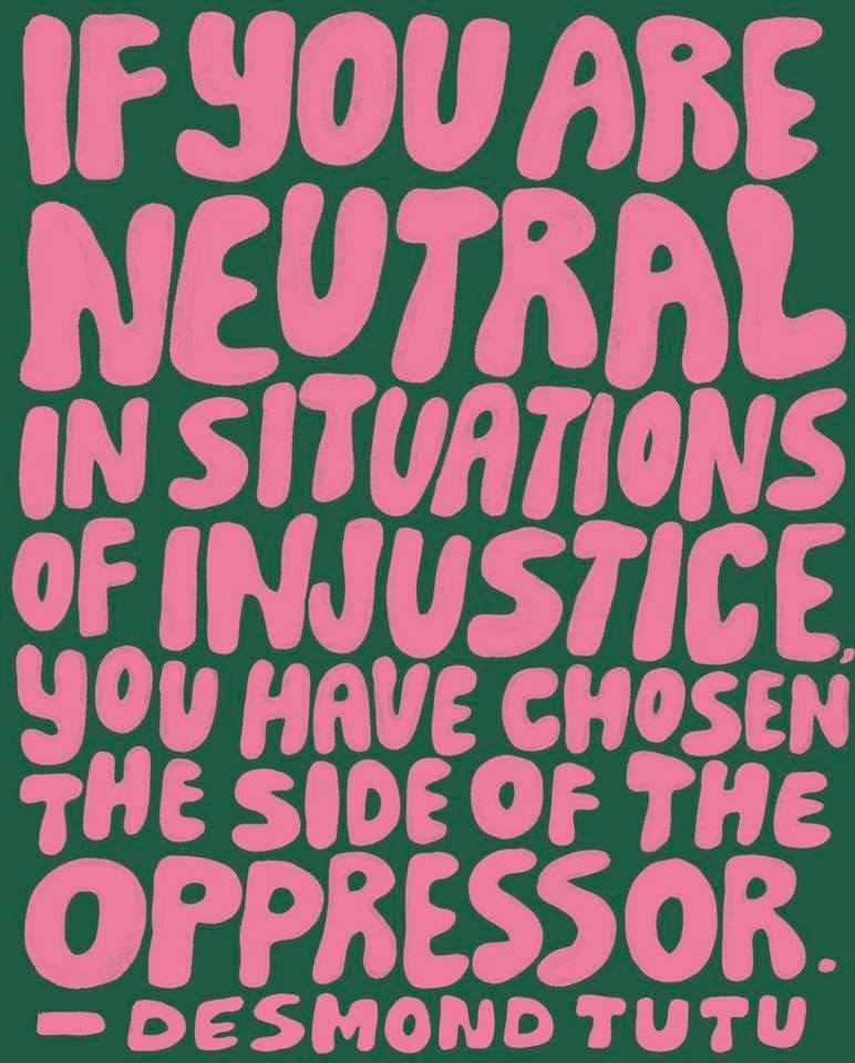 I’ve seen this quote from Desmond Tutu shared a lot on social media these past few days: ‘If you are neutral in situations of injustice, you have chosen the side of the oppressor’. And I relate, I think more often than not I choose to be neutral, to, God-forbid not hurt someone’s feelings or illicit an unintended online brawl between all the different sides of a problem. But how can we be neutral just because we have it better than others? How can we consider that the position we are in isn’t hurting or harming someone else? How can we think that being vocal in situations of injustice doesn’t change a thing? It always does, even if it’s just the mentality of your next-door neighbour, or of someone in your family. Asking those hard questions and not remaining neutral in any injustice situations changes things little by little. It brings people the courage to pursue the fight against that injustice, so that it doesn’t happen again. What is currently happening in the US is a systematic neutrality I, as a white cisgender woman am often a culprit of. I don’t want to hurt this person’s feelings, oh God, what if I posted that thing and then some snowflake on my Facebook will feel attacked by a woman speaking her mind? Or even worse, what if people don’t agree with me and then they stop liking me? Well honestly, we shouldn’t even be friends on Facebook or otherwise if you don’t see what happened(and is constantly happening in the US and across the world with people of colour) as a very very massive problem of our society. We shouldn’t talk if me posting or sharing stories of injustice bothers you, and you feel the need to hurt my feelings for ‘daring to share these’. I see so many people feeling attacked by this injustice, even though they are part of a privileged group. The fact that the world is talking in anger of yet another black man or woman killed by police brutality should bother you, and it should push you to make a change, to talk about it, and understand the issue better, to be present and not neutral. These situations don’t call for neutrality for the sake of neutrality, they call for action, for anger, for tears and for rebellious and courageous acts that will change something and that will push this world to a better place. That something is the word of order here, it can be someone’s mindset, someone’s apathy, someone’s neutrality or someone’s way of seeing the world, it can be anything as long as it[s a positive change. We don’t change by closing our eyes at the things that bother us, they’ll keep bothering us in a week, month or year’s time, they will still be there. From any position of privilege we find ourselves in, we have the power to use that privilege for good. And now it’s a time as good as ever to push for that change. Now we need to use that anger for making good, those tears for all of us to not shed others, those rebellious and courageous acts that we can do the way we consider fit to help.